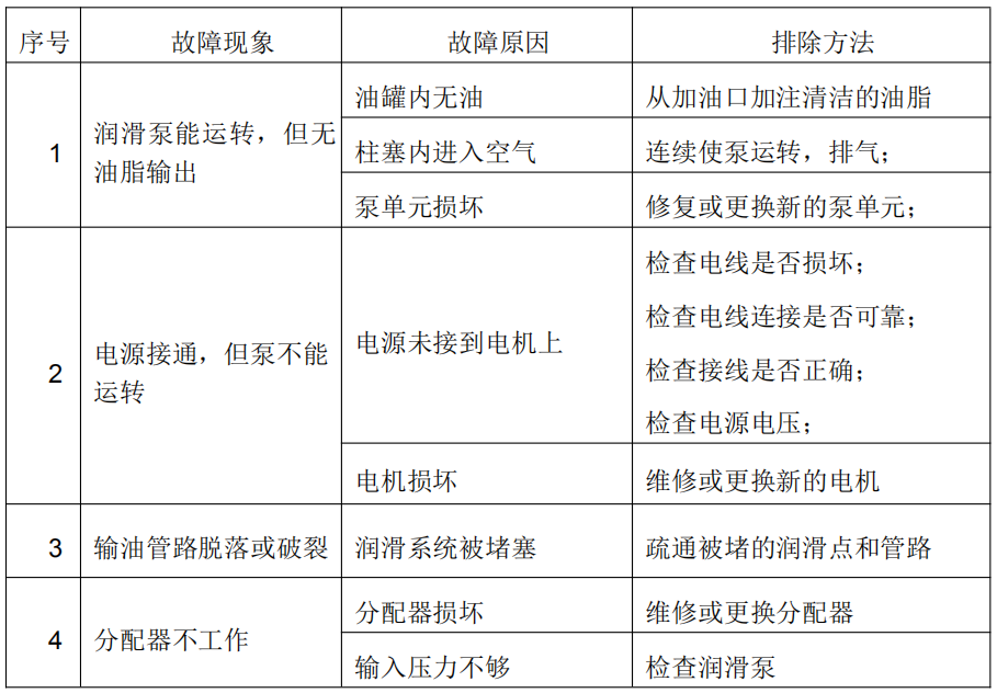 嚴禁有任何雜物混入。否則,可能使潤滑系統發生故障,造成潤滑泵及分配器的損壞,甚至加速磨損潤滑副。