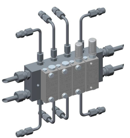 3.可以把幾個出油量不同的計量組件組合成一個分配器,滿足不同潤滑點不同的給油量的要